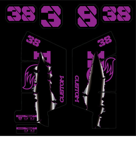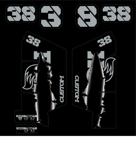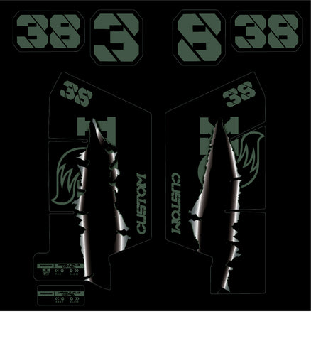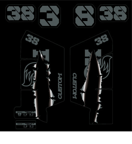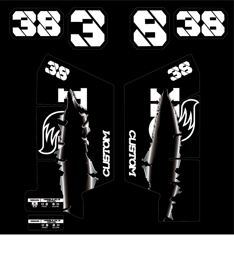 38 RIPPER decal kits. To fit FOX 38. Get slicker than slick graphics from Richard Scott Design. Join over 10,000 customers. Wraps fit Fox 38 Factory, Elite and Performance. A separate rebound decal is supplied to add on for the Performance model.